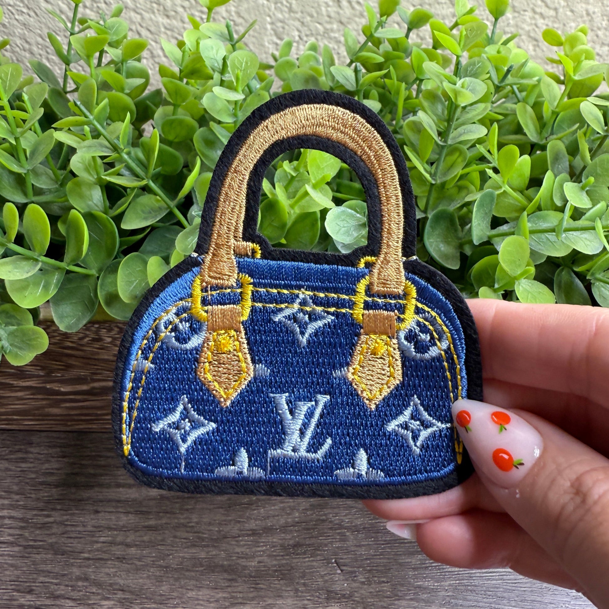 Blue Tote Bag Embroidered Small Patches