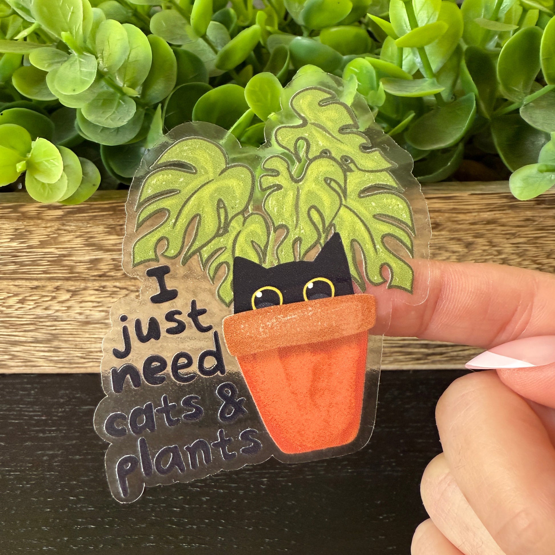 I Just Need Cats and Plants Clear Vinyl Sticker 3"
