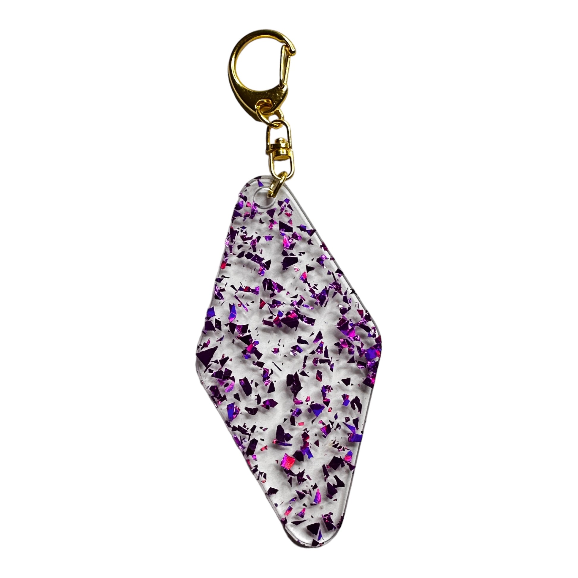 Purple Glitter on Clear Acrylic