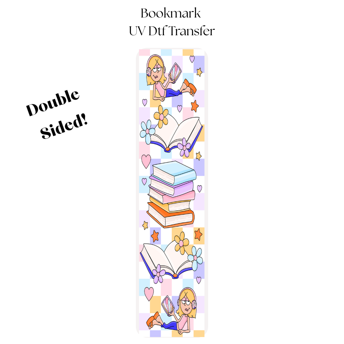 PLEASE NOTE THE SIZE OF TRANSFER- This transfer will work well with bookmarks sized 6” in height and 1.5” in width