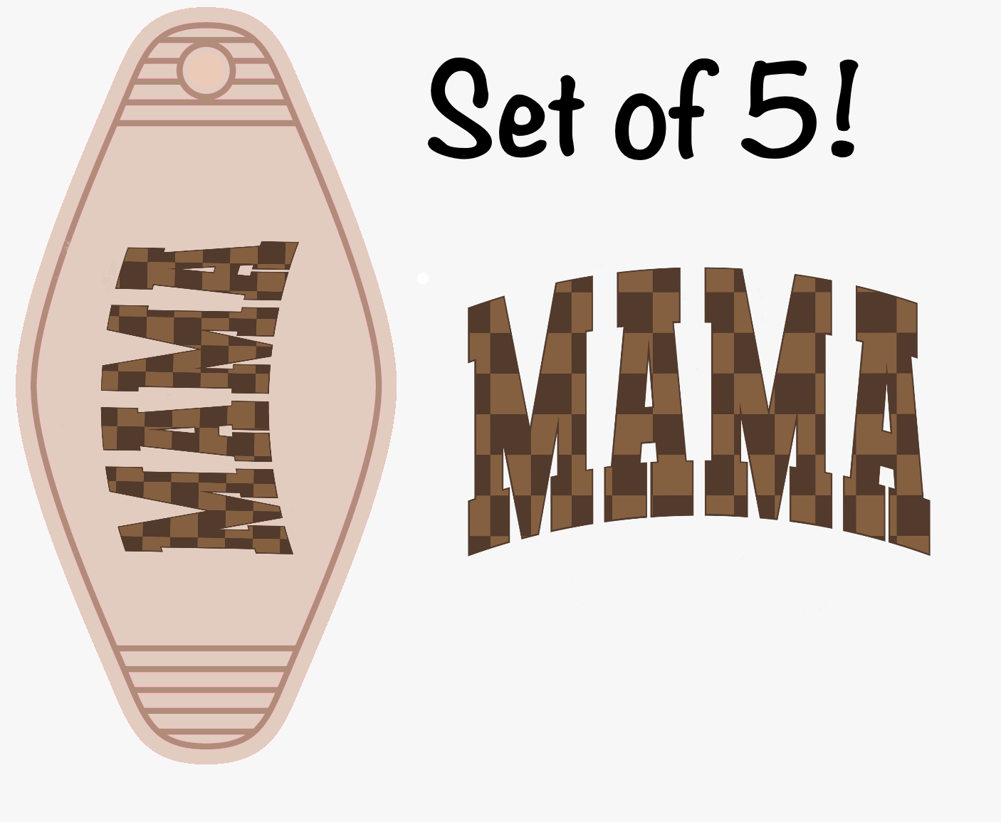 Brown Checkered Mama (MOTEL KEYCHAIN) Set of 5