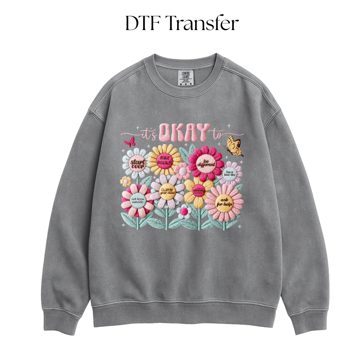 Its Okay To Faux Yarn Flowers DTF Transfer