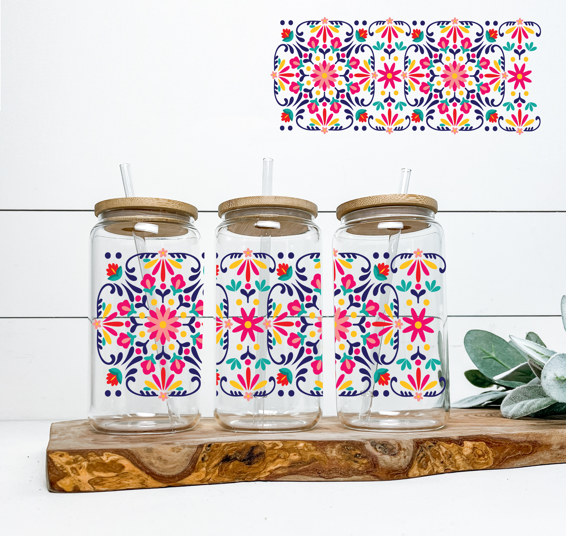 Floral Pink & Blue UV DTF Wrap