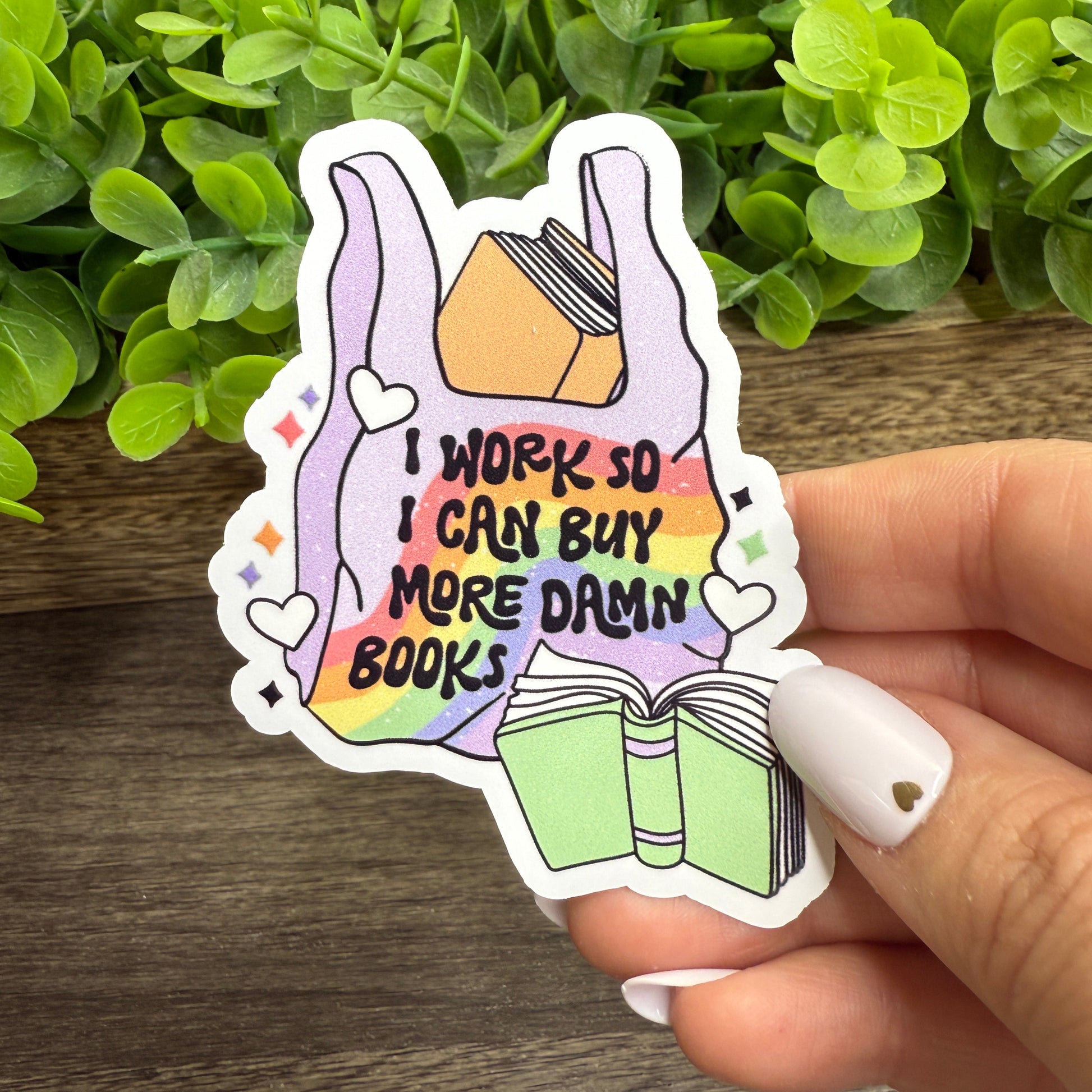 I Work so I can Buy More Damn Books White Vinyl Sticker 3"