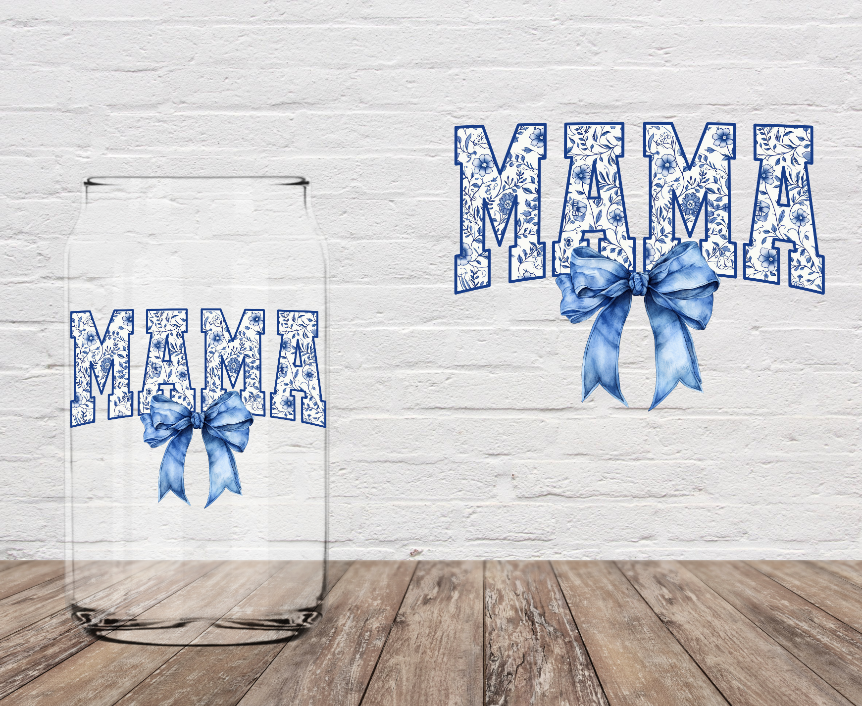 Mama Blue Bow 4" UV DTF