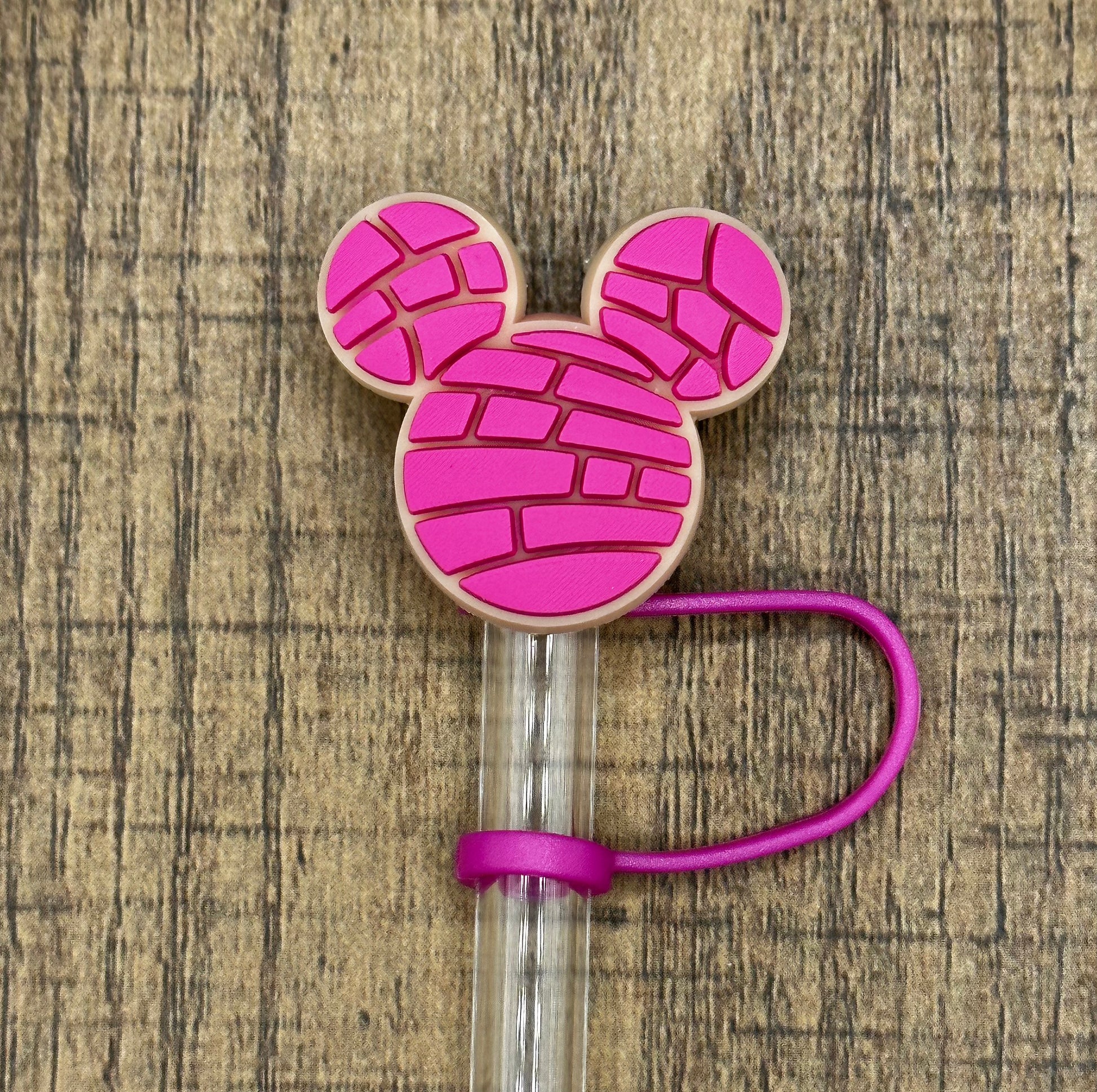 Pink Concha Mouse Ears Silicone Straw Topper