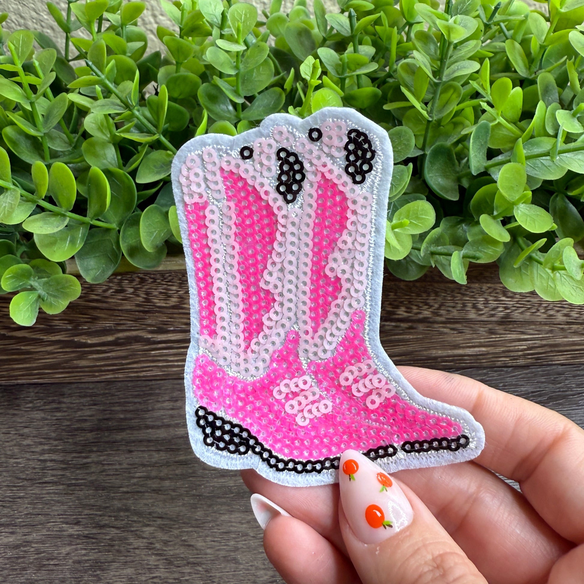Pink Cowboy Boots Sequined Small Patches