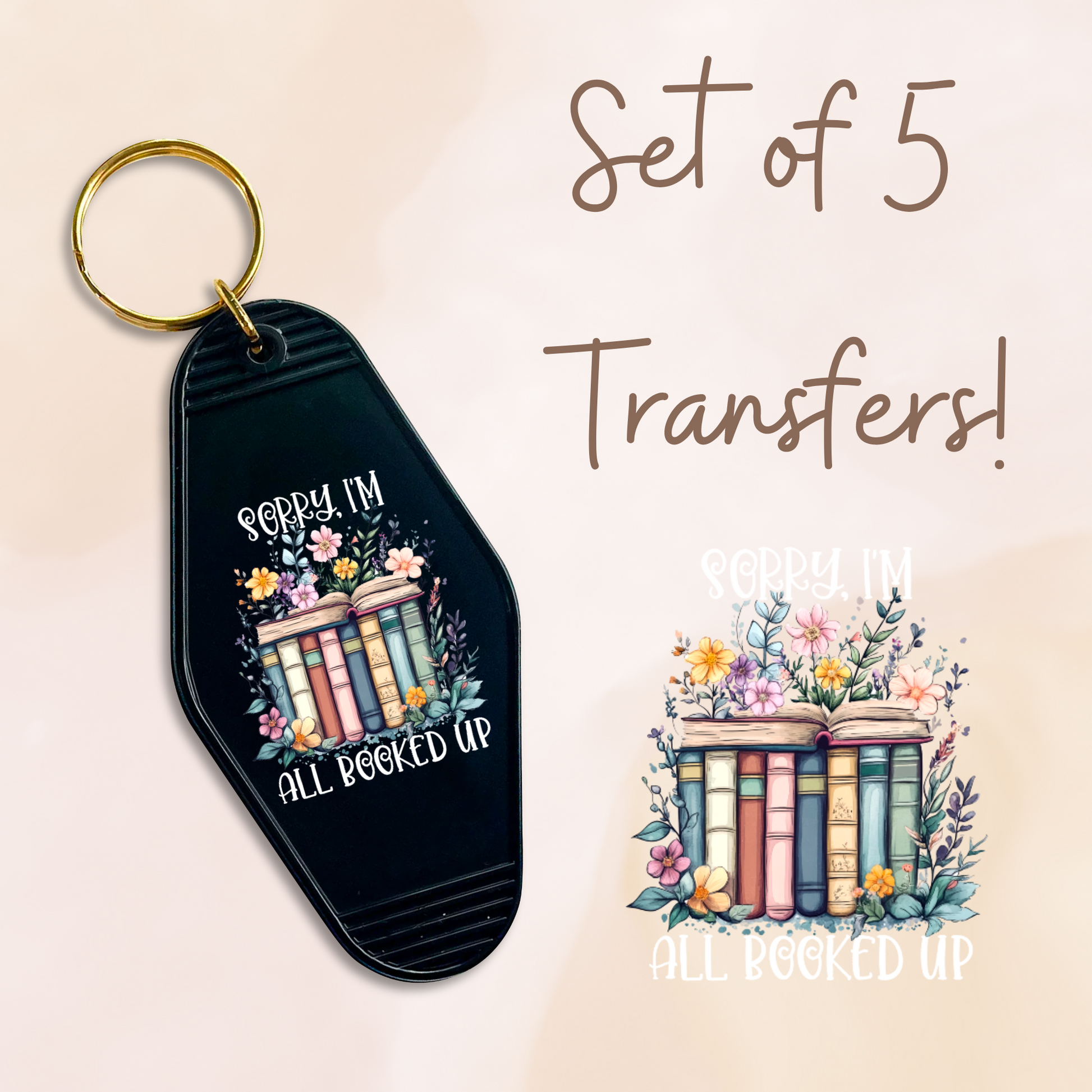 Sorry, I'm All Booked Up Floral MOTEL KEYCHAIN Transfer