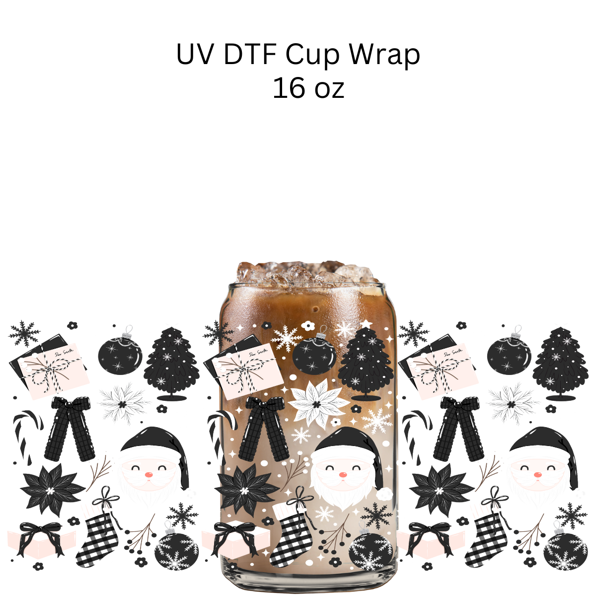 Black White Christmas UV DTF Cup Wrap